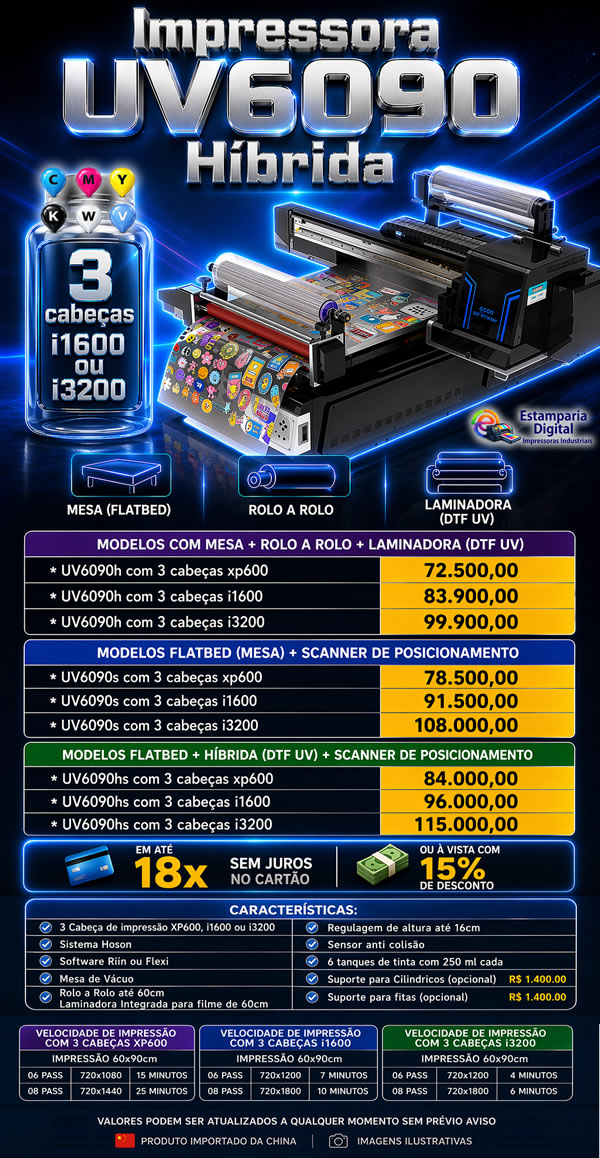 Impressora UV 6090 híbrida
